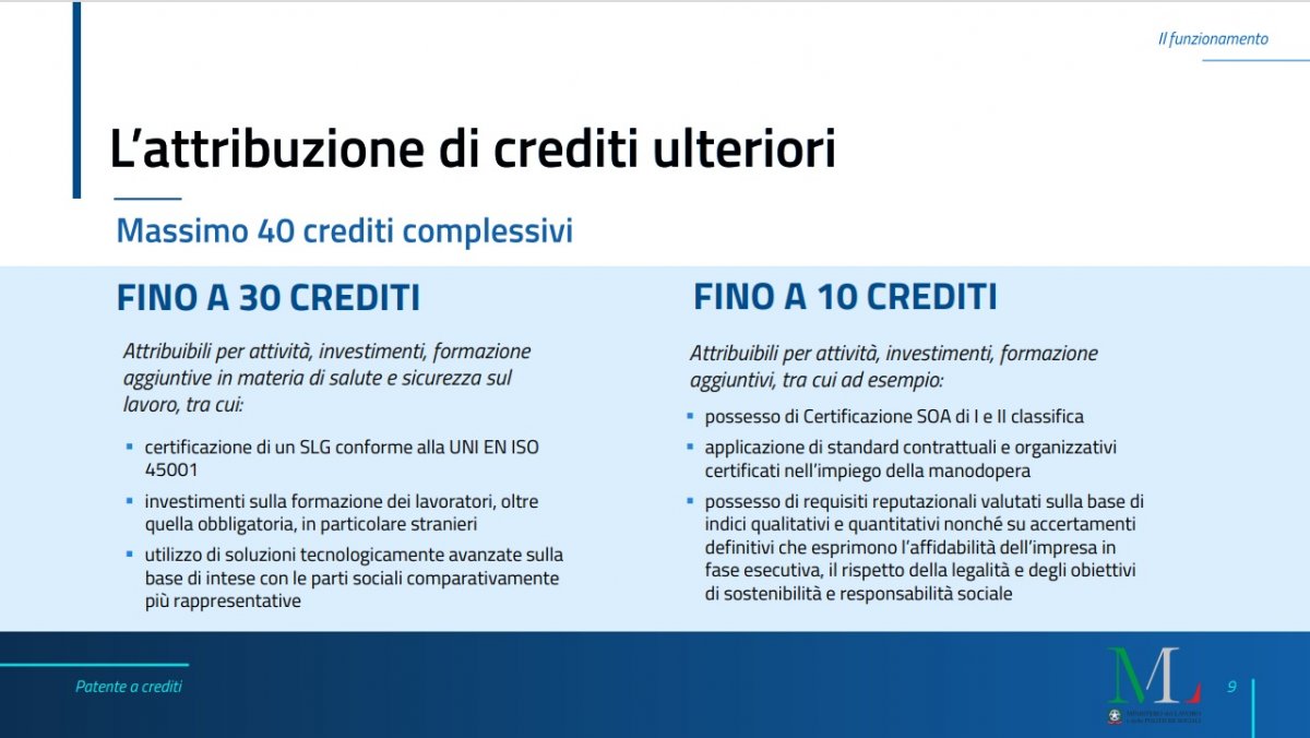 Cosi come previsto dal decreto attuativo della norma, attribuibili per attività, investimenti, formazione aggiuntive in materia di salute e sicurezza sul lavoro, tra cui:
